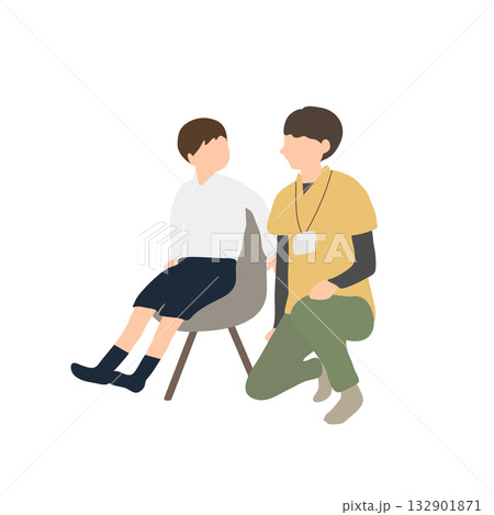 低学年の児童と保護者と先生の三者面談のイラスト