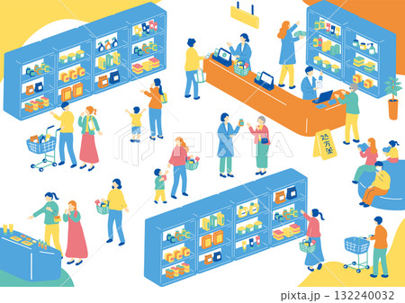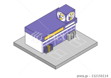 ドラッグストアのシンプルな線画アイソメトリックイラスト