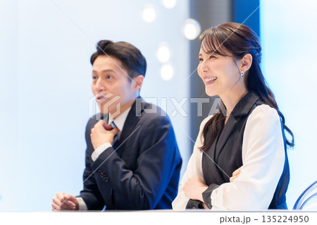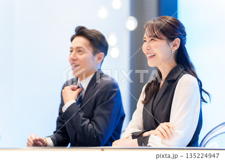 笑顔で談笑しているシャツ姿の男性