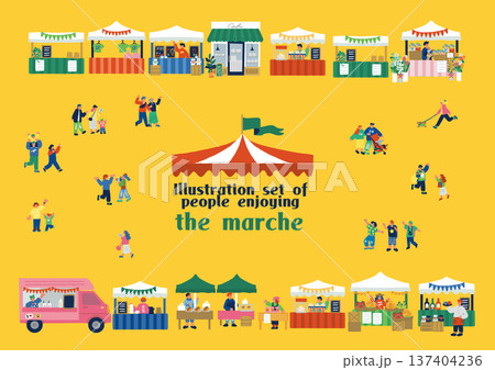 マルシェイベント風景 人々で賑わう屋外マーケットのイラスト
