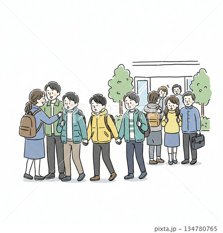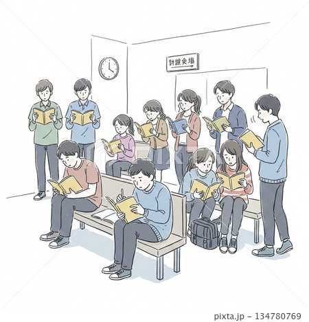 勉強をする制服姿の女子学生と男子学生のイラスト素材