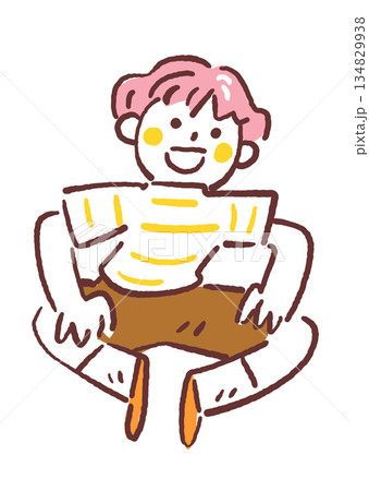 体操座りで話を聞くリラックスした子供、インクルーシブ教育の小学生、イラスト