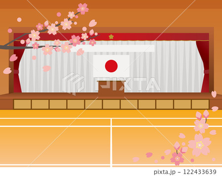 卒業式会場が設営された体育館 / スクールライフ・学園ロケーション・青春とノスタルジーのイメージ