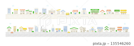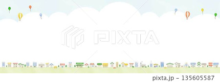 かわいい街並みの背景イラスト素材 横長 コピースペース