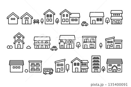 建物アイコン 不動産 家 住宅 戸建て シンプル イラスト セット バリエーション 線画 ベクター