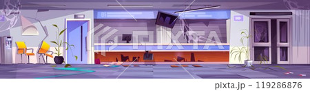 Abandoned dirty hotel lobby room interior cartoon