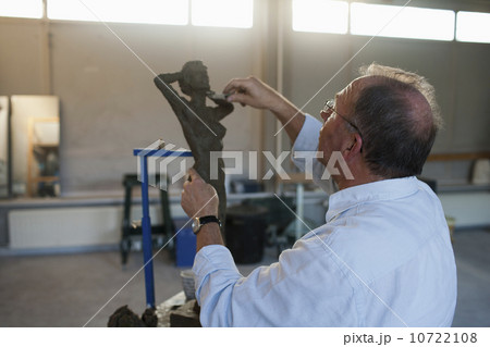 Retired man working on sculpture