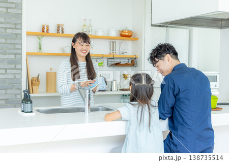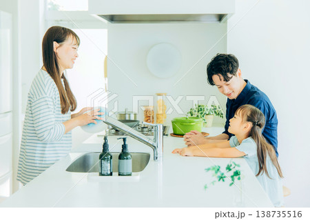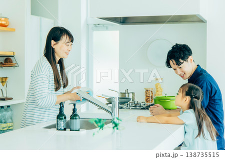 キッチンで料理をする家族