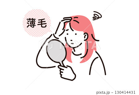 手鏡を見ながら薄毛に悩む女性シンプル線画