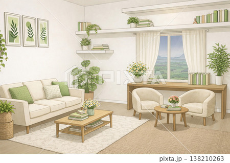 リビング シンプル ナチュラル インテリア 水彩イラスト