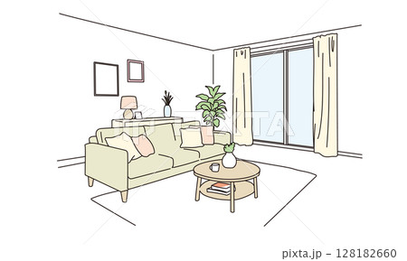 シンプルでおしゃれなリビングの線画イラスト