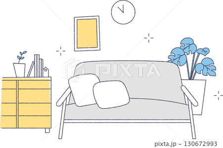 ソファーのあるリビングルームのシンプルイラスト