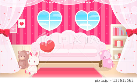 バレンタインデーに使えるハートの窓の可愛い部屋の背景素材_ピンク、昼
