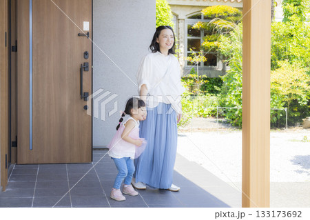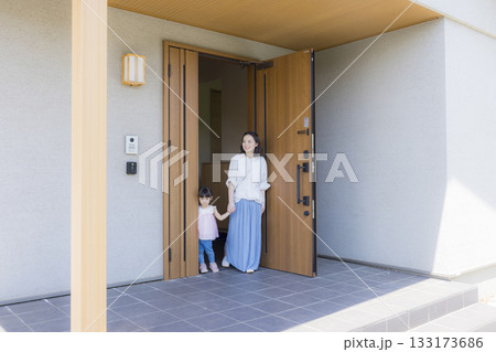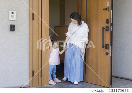 外出する玄関のファミリー