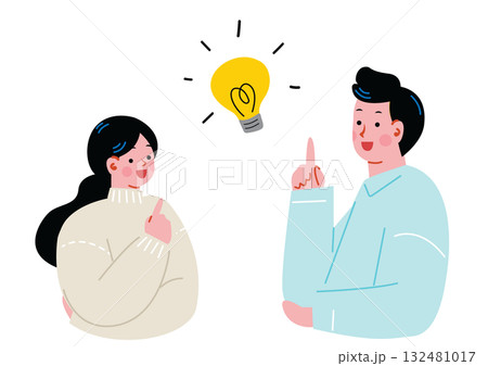 いい案を思いついた・閃いた、若い男性と女性の上半身ベクターイラスト素材_カラー