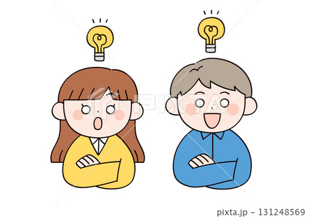 いいアイデアがひらめいた、ビジネスマンのシンプルなベクターイラスト素材_男女セット_カラー