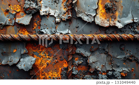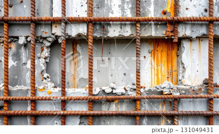 《AI画像》風化して鉄筋が剥き出しになったコンクリートの壁