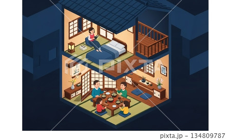 昔ながらの和室リビング 畳・和風インテリア挿絵・アイコン素材