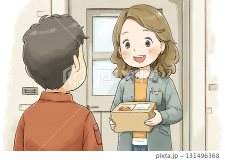 宅配サービス女性スタッフと会話し一人暮らしの寂しさが紛れるシニア女性