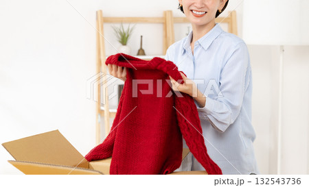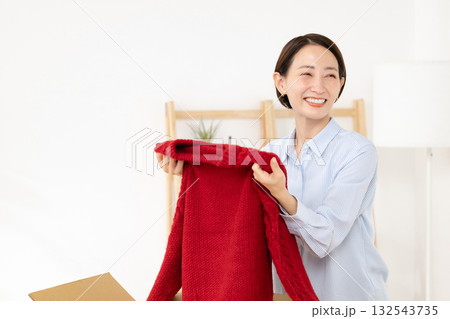 引越し用のダンボールをたくさん作るミドル〜シニア女性
