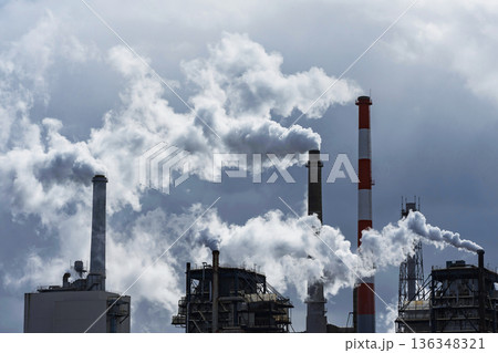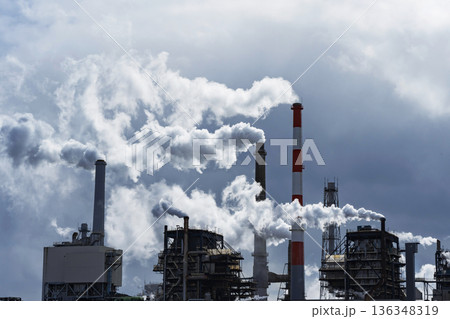 『エントツの煙 大気汚染 』SDGs地球環境 コンビナート工場汚染