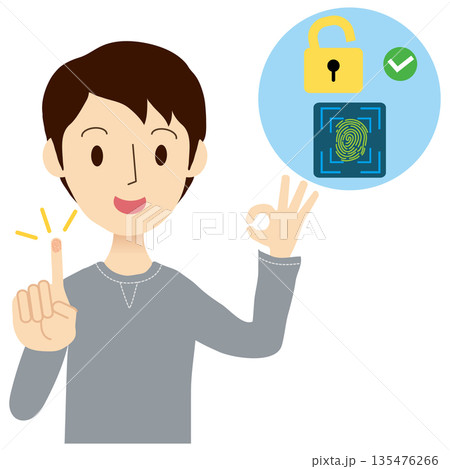 人差し指で指紋認証をする男性 スマートフォン承認イメージ