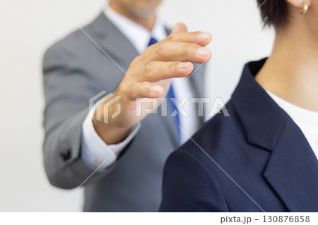 肩を触られるビジネスウーマン セクハライメージ