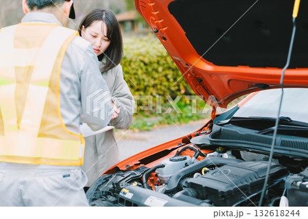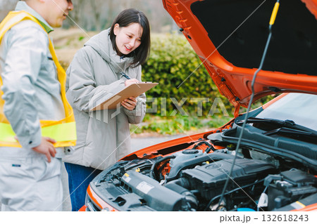 車を点検する女性 OK