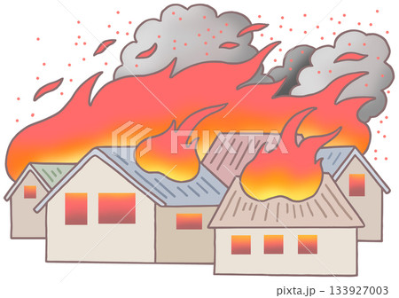 火災事故のイラスト - 火事・大規模火災・火の粉・飛び火