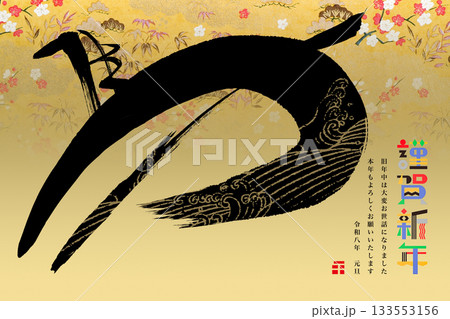 午 午年 馬 年賀2026 年賀状 2026 うま年 干支 墨絵 ビジネス フォーマル イラスト素材