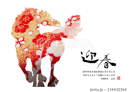 年賀状, 馬, 午年, 午, 動物, 干支, 和風, 和, 正月, 金, 年賀, 新年, 年賀状素材