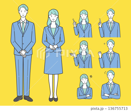 スーツを着た女性と男性のイラストセット