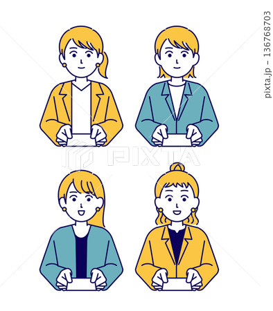 ポジティブなイメージの、女性会社員のベクターイラスト素材セット_線幅の編集可能_カラー