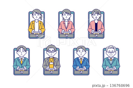 携帯から飛び出て握手をするビジネスマンのイラスト素材