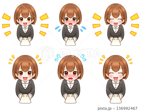 スーツを着た若い男女の表情セット