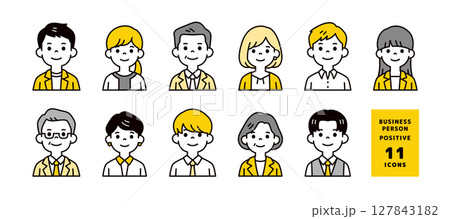ポジティブな表情・ポーズのビジネスパーソンの上半身アバターアイコン素材セット_カラーA