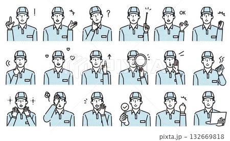 ビジネスパーソンー作業服の男性アバターー上半身ーオシャレアイコンセットシンプルベクターイラスト素材