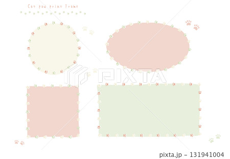 猫(動物)の足跡が彩るキュートな背景フレームイラストセット