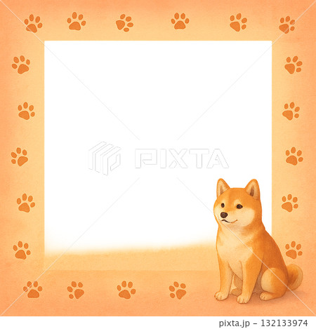 水彩風の猫(動物)の足跡が彩るキュートな背景フレームイラスト