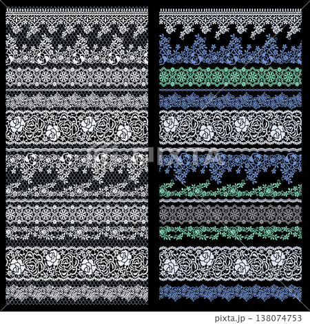 レースのライン素材セット(ブルー)/ドイリー・模様・背景