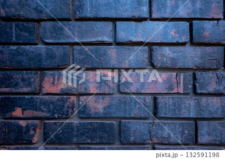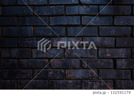 古い黒ずむレンガ壁の背景素材 a-1-1 暗い寒色