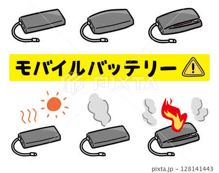 危険な状態のモバイルバッテリーのイラストのセット