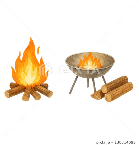 焚き火と焚き火台のキャンプアイコンイラスト