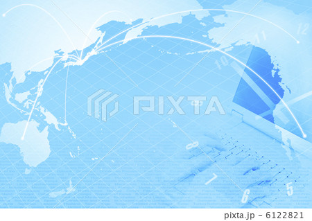 Blue screen with globe and charts