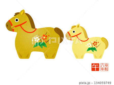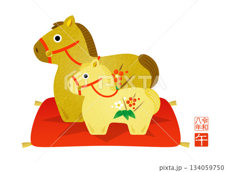 2026年 午年の年賀状素材 馬の親子の土鈴イラスト
