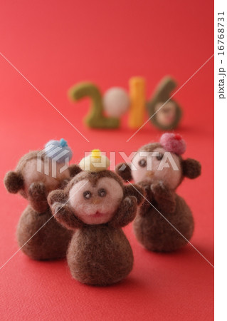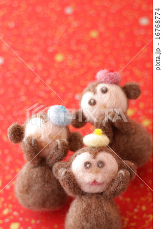 フェルトの猿と赤の背景
