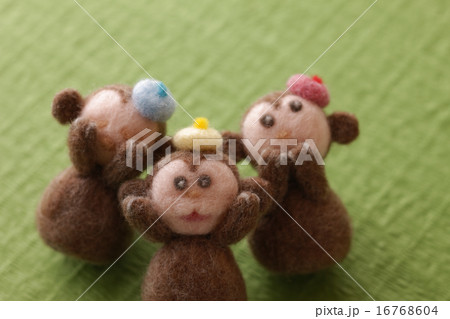 フェルトの猿と緑の背景