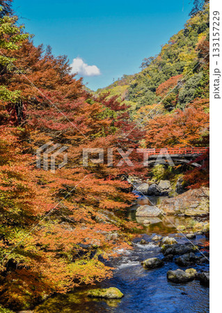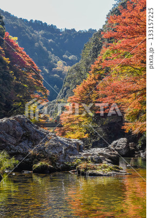 京都市 紅葉の清滝川風景