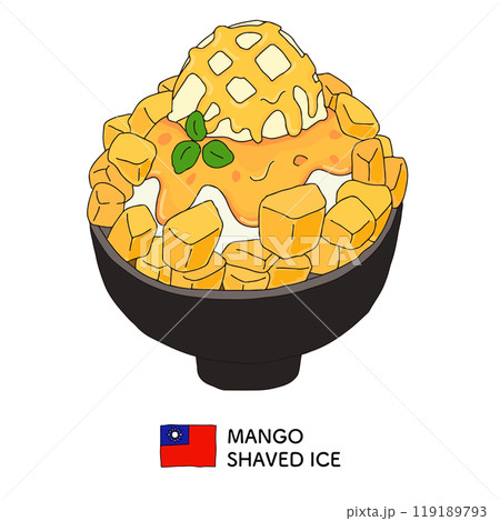 若者に人気!話題の台湾・韓国スイーツグルメ「マンゴーかき氷」のイラスト