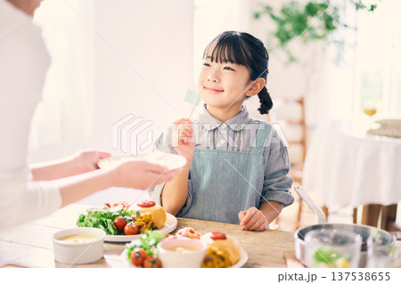 食事の手伝いをする小学生の女の子